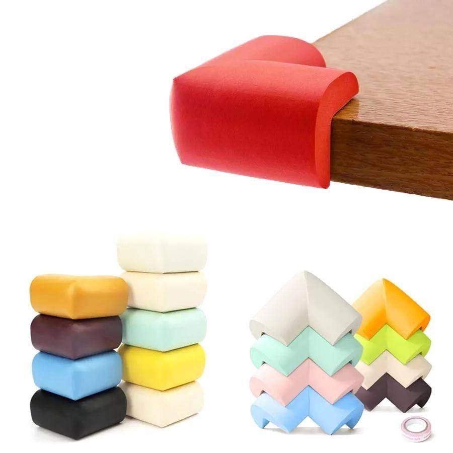 Оградить ребенка от острых углов помогут мягкие защитные накладки для столешниц, тумб, дверей шкафов.