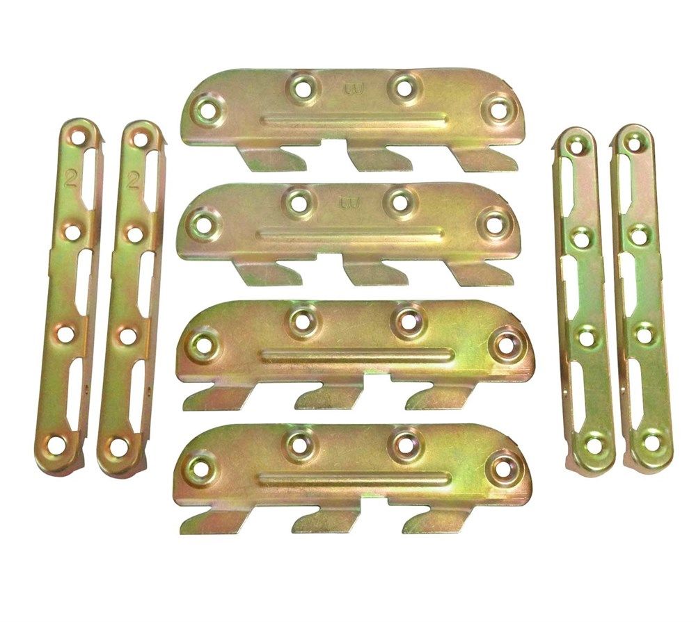 Комплект состоит из 4-х креплений, рассчитанных на 4 угла кровати.